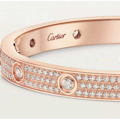 LOVE手镯,750/1000玫瑰金,镶嵌216颗圆形明亮式切割钻石,总重3.15克拉(适用尺寸:17)。